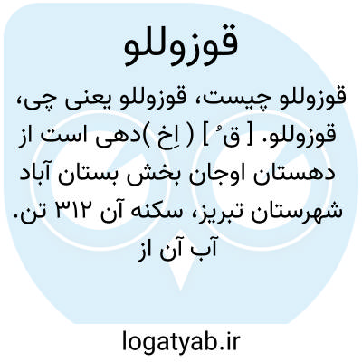 قوزوللو. [ ق ُ ] ( اِخ )دهی است از دهستان اوجان بخش بستان آباد شهرستان تبریز، سکنه آن 312 تن. آب آن از چشمه. محصول آن غلات، حبوب و درخت تبریزی. شغل اهالی زراعت و گله داری است.راه مالرو دارد. ( از فرهنگ جغرافیایی ایران ج 5 ).