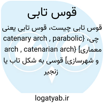 {catenary arch , parabolic arch , catenarian arch} [معماری و شهرسازی] قوسی به شکل تاب یا زنجیر آویخته که ازنظر هندسی مطابق سهمی است