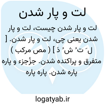 لت و پار شدن. [ ل َ ت ُ ش ُ دَ ] ( مص مرکب ) متفرق و پراکنده شدن. جزٔجزء و پاره پاره شدن. پاره پاره و لخت لخت شدن. پریشان شدن.