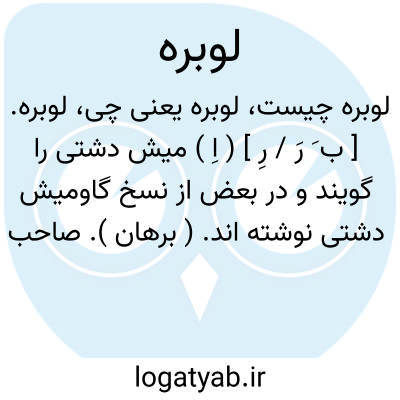 لوبره. [ ب َ رَ / رِ ] ( اِ ) میش دشتی را گویند و در بعض از نسخ گاومیش دشتی نوشته اند. ( برهان ). صاحب انجمن آرا و آنندراج بر این قول برهان که گوید به معنی گاومیش دشتی نیز آمده خرده گرفته و گفته اند: و معلوم شد که میش دشتی را گاومیش دشتی خوانده چه در فرهنگها چنان چیزی نیست.