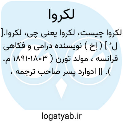 لکروا.[ ل ُ ] ( اِخ ) نویسنده درامی و فکاهی فرانسه، مولد تورن ( 1803-1891 م. ). || ادوارد پسر صاحب ترجمه، رجل سیاسی و او چند بار وزارت کرده است. مولد پاریس ( 1840-1913 م. ).