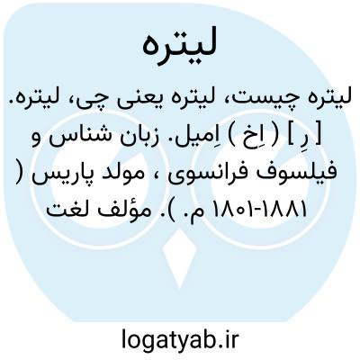 لیتره. [ رِ ] ( اِخ ) اِمیل. زبان شناس و فیلسوف فرانسوی، مولد پاریس ( 1801-1881 م. ). مؤلف لغت نامه مشهور فرانسه.