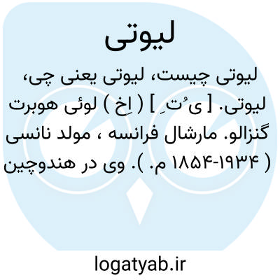 لیوتی. [ ی ُت ِ ] ( اِخ ) لوئی هوبرت گنزالو. مارشال فرانسه، مولد نانسی ( 1854-1934 م. ). وی در هندوچین و ماداگاسکار و اُرنه جنوبی شهرت کرده و چندگاهی ( 1916-1917 م. ) نیز وزیر جنگ بوده است.