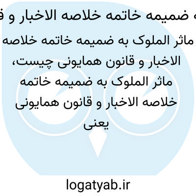 [ویکی نور] مآثر الملوک به ضمیمه خاتمه خلاصه الاخبار و قانون همایونی. "مآثر الملوک " اثر خواند میر غیاث الدین بن همام الدین حسینی است که در سال 901 ق به رشته تحریر درآمده و موضوع آن بناها، موسسات، اوقاف و سخنان حکمت آمیز پادشاهان و حکما می باشد.