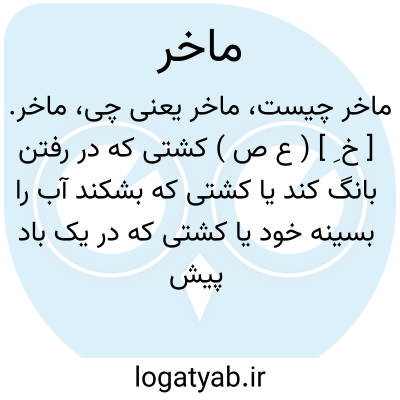 ماخر. [ خ ِ ] ( ع ص ) کشتی که در رفتن بانگ کند یا کشتی که بشکند آب را بسینه خود یا کشتی که در یک باد پیش آید و پس رود. ج، مواخر؛ منه قوله تعالی «مَواخر فیه »؛ ای جواری فیه. ( منتهی الارب ).