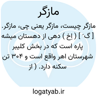 مازگر. [ گ َ ] ( اِخ ) دهی از دهستان میشه پاره است که در بخش کلیبر شهرستان اهر واقع است و 304 تن سکنه دارد. ( از فرهنگ جغرافیایی ایران ج 4 ).