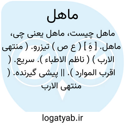 ماهل. [ هَِ ] ( ع ص ) تیزرو. ( منتهی الارب ) ( ناظم الاطباء ). سریع. ( اقرب الموارد ). || پیشی گیرنده. ( منتهی الارب ) ( ناظم الاطباء ) ( از اقرب الموارد ). || سلف متقدم مرد. ( ناظم الاطباء ).