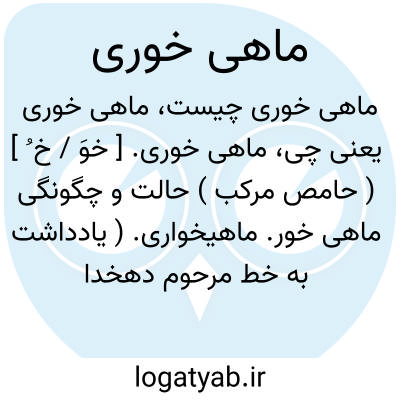 ماهی خوری. [ خوَ / خ ُ ] ( حامص مرکب ) حالت و چگونگی ماهی خور. ماهیخواری. ( یادداشت به خط مرحوم دهخدا ). و رجوع به ماهیخور و ماهیخواری و ماهیخوار شود. || ( اِ مرکب ) ظرفی برای نهادن ماهی سرخ شده و پخته بر سفره. ( از یادداشت به خط مرحوم دهخدا ).