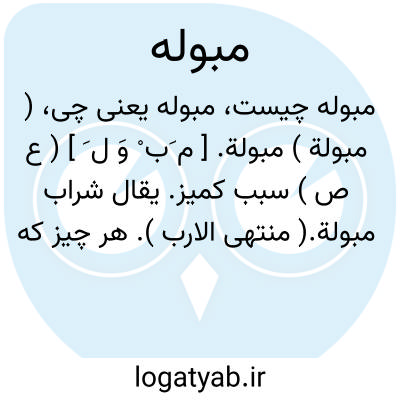 ( مبولة ) مبولة. [ م َب ْ وَ ل َ ] ( ع ص ) سبب کمیز. یقال شراب مبولة.( منتهی الارب ). هر چیز که سبب کمیز و بول گردد. یقال، الشراب مبولة. ( ناظم الاطباء ) ( از اقرب الموارد ).