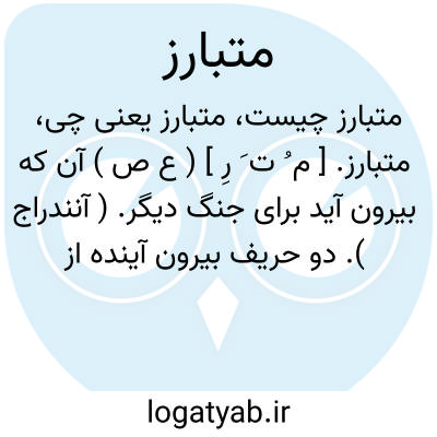 متبارز. [ م ُ ت َ رِ ] ( ع ص ) آن که بیرون آید برای جنگ دیگر. ( آنندراج ). دو حریف بیرون آینده از جماعتهای خود برای جنگیدن با هم. ( ناظم الاطباء ). و رجوع به تبارز شود.