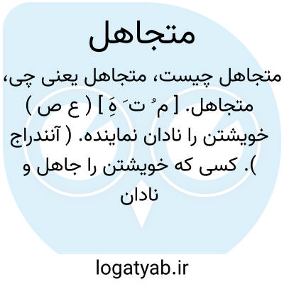 ( اسم ) آنکه خود را بنادانی زند خویشتن را نادان نماینده جمع: متجاهلین.