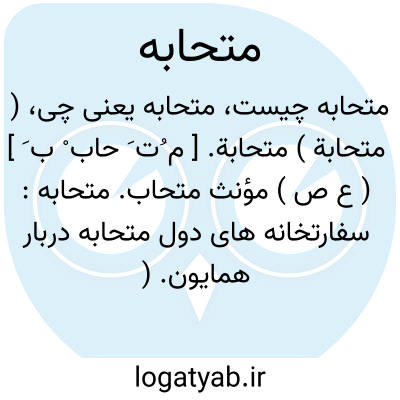 ( اسم ) مونث متحاب: سفارتخانه های دول متحاب. دربار همایون. جمع: متحابات.