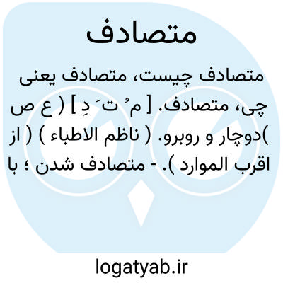 متصادف. [ م ُ ت َ دِ ] ( ع ص )دوچار و روبرو. ( ناظم الاطباء ) ( از اقرب الموارد ).