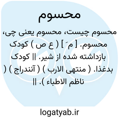 محسوم. [ م َ ] ( ع ص ) کودک بازداشته شده از شیر. || کودک بدغذا. ( منتهی الارب ) ( آنندراج ) ( ناظم الاطباء ). || بریده. رگ بریده. ( از منتهی الارب ).