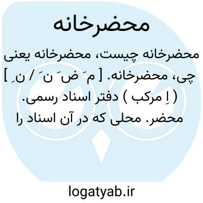 محضرخانه. [ م َ ض َ ن َ / ن ِ ] ( اِ مرکب ) دفتر اسناد رسمی. محضر. محلی که در آن اسناد را تهیه و ثبت کنند. دفترخانه. || محل اجتماع و جمعیت. || بارگاه. دربار. ( ناظم الاطباء ).