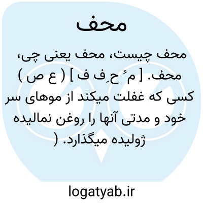 محف. [ م ُ ح ِف ف ] ( ع ص ) کسی که غفلت میکند از موهای سر خود و مدتی آنها را روغن نمالیده ژولیده میگذارد. ( ناظم الاطباء ) ( از منتهی الارب ). || آن که بسیار بار میکند اسب را. ( ناظم الاطباء ). آن که اسب را چنان راند که آواز برآید از رفتار وی. || آنکه جامه را به شانه و تیغ بافد. || که یاد کند کسی را به زشتی. ( منتهی الارب ).