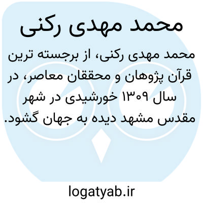 [ویکی فقه] محمد مهدی رکنی از محققان و قرآن پژوهان معاصر می باشد که در سال ۱۳۰۹ هجری شمسی در مشهد مقدس متولد شد.