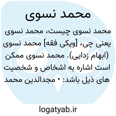 [ویکی فقه] محمد نسوی (ابهام زدایی). محمد نسوی ممکن است اشاره به اشخاص و شخصیت های ذیل باشد: • مجدالدین محمد پاییزی نسوی، پاییزیِ نَسَوی، مجدالدین محمد، شاعر و حماسه سرای ایرانی سدۀ ۷ق/۱۳م در دربار ملوک خانیۀ ماوراءالنهر• شهاب الدین محمد خرندزی زیدری نسوی، شهاب الدین محمد خرندزی؛ معروف به نسوی از صاحب منصبان و دانشمندان دوره خوارزمشاهی