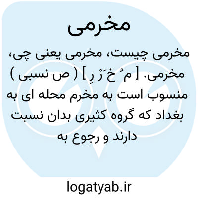 مخرمی. [ م ُ خ َرْ رِ ] ( ص نسبی ) منسوب است به مخرم محله ای به بغداد که گروه کثیری بدان نسبت دارند و رجوع به مخرم و الانساب سمعانی ج 2 ص 514 ورق ب و 514 ورق الف شود.