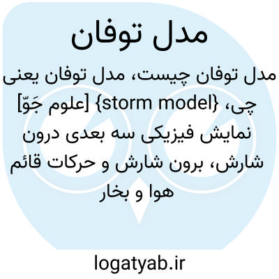 {storm model} [علوم جَوّ] نمایش فیزیکی سه بعدی درون شارش، برون شارش و حرکات قائم هوا و بخار آب در یک توفان