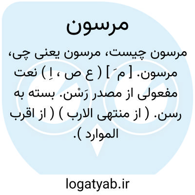 مرسون. [ م َ ] ( ع ص، اِ ) نعت مفعولی از مصدر رَسْن. بسته به رسن. ( از منتهی الارب ) ( از اقرب الموارد ).