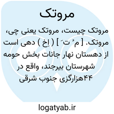مروتک. [ م ُ ت َ ] ( اِخ ) دهی است از دهستان نهار جانات بخش حومه شهرستان بیرجند، واقع در 44هزارگزی جنوب شرقی بیرجند آب آن از قنات و محصول آن غلات و میوه است. ( از فرهنگ جغرافیایی ایران ج 9 ).