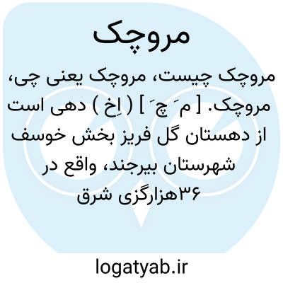مروچک. [ م َ چ َ ] ( اِخ ) دهی است از دهستان گل فریز بخش خوسف شهرستان بیرجند، واقع در 36هزارگزی شرق خوسف. آب آن از قنات و راه آن مالرو است. ( از فرهنگ جغرافیایی ایران ج 9 ).
