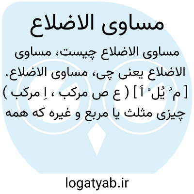 مساوی الاضلاع. [ م ُ یُل ْ اَ ] ( ع ص مرکب، اِ مرکب ) چیزی مثلث یا مربع و غیره که همه گوشه های آن برابر باشد. ( غیاث ). شکل هندسی با ضلعهای برابر هم. متساوی الاضلاع.