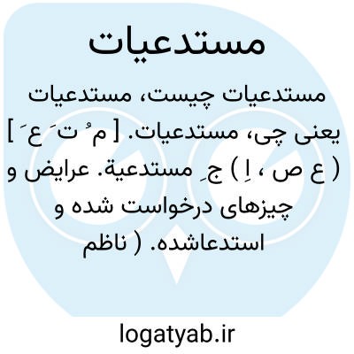 مستدعیات. [ م ُ ت َ ع َ ] ( ع ص، اِ ) ج ِ مستدعیة. عرایض و چیزهای درخواست شده و استدعاشده. ( ناظم الاطباء ). تقاضاها. درخواستها: عرض مطالب مستدعیات اکثر صاحب جمعان به ناظر بیوتات تعلق دارد.( تذکرةالملوک چ دبیرسیاقی ص 12 ). [ معیران ] مستدعیات خود را بدون واسطه مشافهةً عرض.... می داشته اند. ( تذکرةالملوک ص 21 ). رجوع به مستدعیة و مُستدعی ̍ شود.