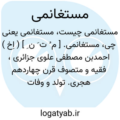 مستغانمی. [ م ُ ت َ ن ِ ] ( اِخ ) احمدبن مصطفی علوی جزائری، فقیه و متصوف قرن چهاردهم هجری. تولد و وفات او در شهر مستغانم در الجزایر بوده است. او راست: المنح القدسیة، لباب العلم فی تفسیر سورة و النجم، مبادی التأیید، الابحاث العلویة فی الفلسفة الاسلامیة و غیره. تولد او به سال 1291 و درگذشتش در سال 1353 هَ. ق. بوده است. ( از الاعلام زرکلی ج 1 ص 243 ).