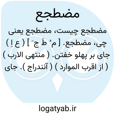 مضطجع. [ م ُ طَ ج َ ] ( ع اِ ) جای بر پهلو خفتن. ( منتهی الارب ) ( از اقرب الموارد ) ( آنندراج ). جای بر پهلو خفتن و بستر. ( ناظم الاطباء ). || ( ص ) هر چیز بر پهلو خفته. ( ناظم الاطباء ) ( از منتهی الارب ) ( از اقرب الموارد ). و رجوع به اضطجاع شود.