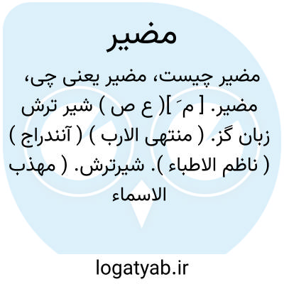 مضیر. [ م َ ]( ع ص ) شیر ترش زبان گز. ( منتهی الارب ) ( آنندراج ) ( ناظم الاطباء ). شیرترش. ( مهذب الاسماء ). || شیرسخت سپید. ( منتهی الارب ) ( آنندراج ) ( ناظم الاطباء ).
