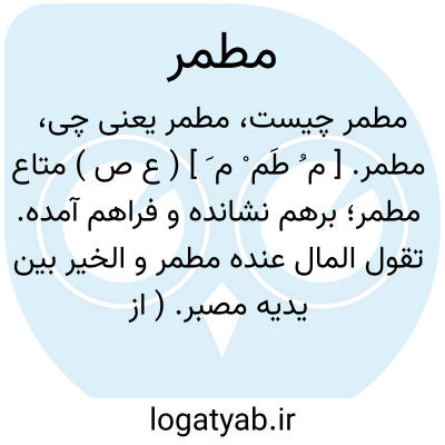 مطمر. [ م ُ طَم ْ م َ ] ( ع ص ) متاع مطمر؛ برهم نشانده و فراهم آمده. تقول المال عنده مطمر و الخیر بین یدیه مصبر. ( از اقرب الموارد ).