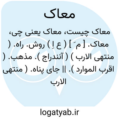 معاک. [ م َ ] ( ع اِ ) روش. راه. ( منتهی الارب ) ( آنندراج ). مذهب. ( اقرب الموارد ). || جای پناه. ( منتهی الارب ) ( آنندراج ). پناهگاه. ( از اقرب الموارد ). || احتمال. ( اقرب الموارد ).