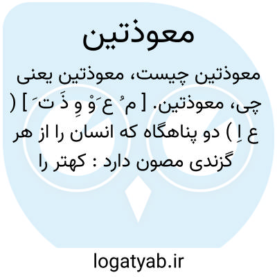 معوذتین. [ م ُ ع َوْ وِ ذَ ت َ ] ( ع اِ ) دو پناهگاه که انسان را از هر گزندی مصون دارد: کهتر را به دو مفاوضه که معوذتین حال کهترند و هر یک عقود جوزا و عنقود ثریا را مانند، تمکین افزوده است نظماء و نثراً. ( منشآت خاقانی چ محمد روشن ص 308 ).