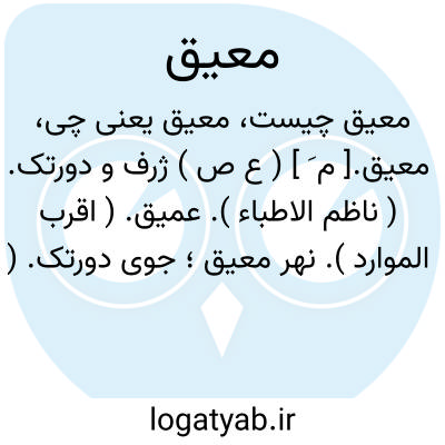 معیق.[ م َ ] ( ع ص ) ژرف و دورتک. ( ناظم الاطباء ). عمیق. ( اقرب الموارد ). نهر معیق؛ جوی دورتک. ( منتهی الارب ).