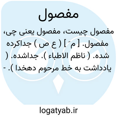 مفصول. [ م َ ] ( ع ص ) جداکرده شده. ( ناظم الاطباء ). جداشده. ( یادداشت به خط مرحوم دهخدا ). - قیاس مفصول. رجوع به قیاس مفصول و قیاس موصول شود. - مفصول نتایج؛ قسمی از قیاس مرکب باشد. ( کشاف اصطلاحات الفنون ). || کودک از شیر باز کرده. مفطوم. ( مهذب الاسماء ). و رجوع به فصل شود.