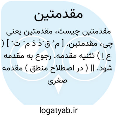 مقدمتین. [ م ُ ق َدْ دَ م َ ت َ ] ( ع اِ ) تثنیه مقدمه. رجوع به مقدمه شود. || ( در اصطلاح منطق ) مقدمه صغری و مقدمه کبری. ( یادداشت به خط مرحوم دهخدا ).
