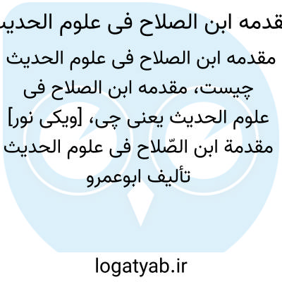 [ویکی نور] مقدمة ابن الصّلاح فی علوم الحدیث تألیف ابوعمرو عثمان بن عبدالرحمن شهرزوری (متوفی 643ق)، معروف به ابن صلاح از مهمترین تألیفات در علم حدیث است که به زبان عربی و در قرن هفتم هجری نوشته شده است. کتاب با تحقیق ابوعبدالرحمن صلاح بن محمد بن عویضه منتشر شده است.