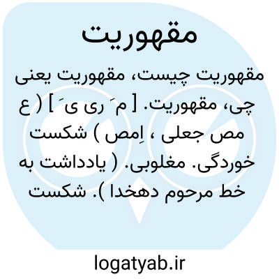 مقهوریت. [ م َ ری ی َ ] ( ع مص جعلی، اِمص ) شکست خوردگی. مغلوبی. ( یادداشت به خط مرحوم دهخدا ). شکست خوردن.