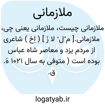 ملازمانی.[ م ُل ْ لا زَ ] ( اِخ ) شاعری از مردم یزد و معاصر شاه عباس بوده است ( متوفی به سال 1021 هَ. ق. ) نصرآبادی آرد: «از اشعار او ظاهر می شود که خیلی قدرت داشته. مشهور است که دیوان خواجه حافظ را جواب گفته به خدمت شاه عباس برده گفت دیوان خواجه حافظ را جواب گفته ام. شاه فرمود که جواب خدا را چه خواهی گفت ». او راست: