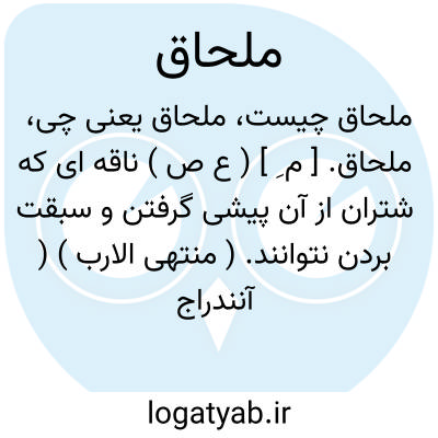 ملحاق. [ م ِ ] ( ع ص ) ناقه ای که شتران از آن پیشی گرفتن و سبقت بردن نتوانند. ( منتهی الارب ) ( آنندراج ) ( ناظم الاطباء ) ( از اقرب الموارد ).