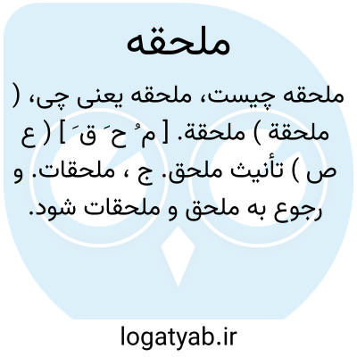 ( ملحقة ) ملحقة. [ م ُ ح َ ق َ ] ( ع ص ) تأنیث ملحق. ج، ملحقات. و رجوع به ملحق و ملحقات شود.