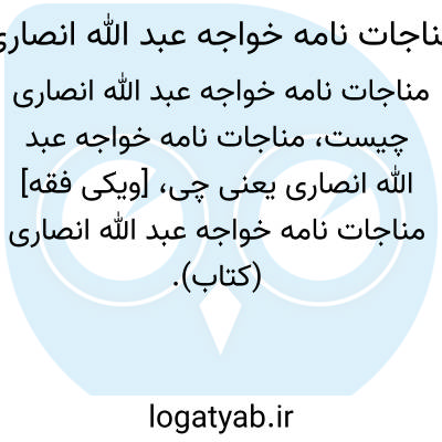 [ویکی نور] مناجات نامه خواجه عبد الله انصاری، رساله ای است عرفانی - ادبی به زبان فارسی، شامل بخشی از مناجات ها و سخنان عرفانی خواجه عبد الله انصاری (متوفی 481ق)، مفسر، فقیه، واعظ، ادیب و عارف پرآوازه سده پنجم قمری.