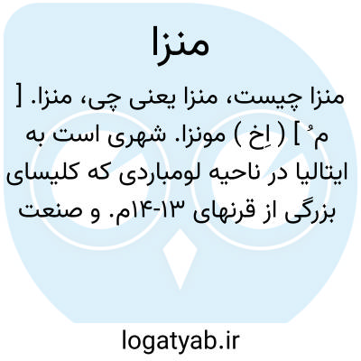 منزا. [ م ُ ] ( اِخ ) مونزا. شهری است به ایتالیا در ناحیه لومباردی که کلیسای بزرگی از قرنهای 13-14م. و صنعت نساجی و 101600 تن سکنه دارد. ( از لاروس ).