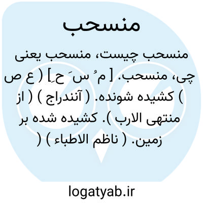 منسحب. [ م ُ س َ ح ِ] ( ع ص ) کشیده شونده. ( آنندراج ) ( از منتهی الارب ). کشیده شده بر زمین. ( ناظم الاطباء ) ( از اقرب الموارد ).