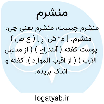 منشرم. [ م ُ ش َ رِ ] ( ع ص ) پوست کفته.( آنندراج ) ( از منتهی الارب ) ( از اقرب الموارد ). کفته و اندک بریده. ( ناظم الاطباء ). رجوع به انشرام شود.
