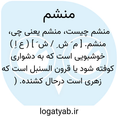 منشم. [ م َ ش ِ / ش َ ] ( ع اِ ) بار درختی است سیاه و بدبوی. ( منتهی الارب ) ( ناظم الاطباء ) ( از اقرب الموارد ). || حب البلسان. ( مفاتیح العلوم خوارزمی ). دانه بلسان. ( منتهی الارب ) ( ناظم الاطباء ) ( از اقرب الموارد ).