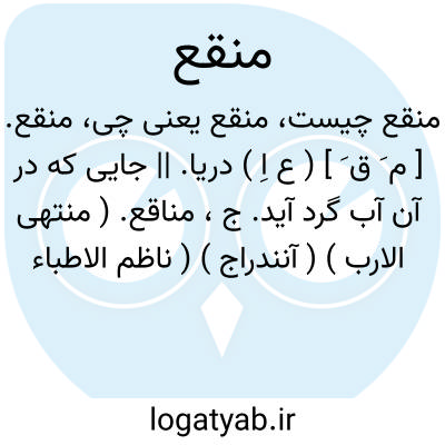 منقع. [ م َ ق َ ] ( ع اِ ) دریا. || جایی که در آن آب گرد آید. ج، مناقع. ( منتهی الارب ) ( آنندراج ) ( ناظم الاطباء ) ( از اقرب الموارد ). || ( اِمص ) سیرابی. ( منتهی الارب ) ( آنندراج ) ( ناظم الاطباء ). سیری از آب. ( از اقرب الموارد ). || ( ص ) عدل منقع؛ گواه عادل که بس است گواهی او یا ذات یا حکم او. ( منتهی الارب ) ( آنندراج ) ( از ناظم الاطباء ) ( از اقرب الموارد ). || ( مص ) نَقع. سیراب شدن کسی از آب. ( از ناظم الاطباء ).