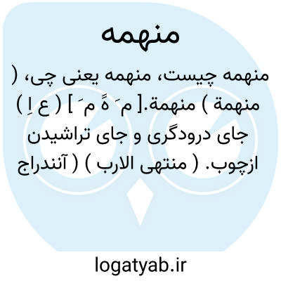 ( منهمة ) منهمة.[ م َ هََ م َ ] ( ع اِ ) جای درودگری و جای تراشیدن ازچوب. ( منتهی الارب ) ( آنندراج ). دکان درودگری و نجاری. ( ناظم الاطباء ). جای درودگری. ( از اقرب الموارد ).